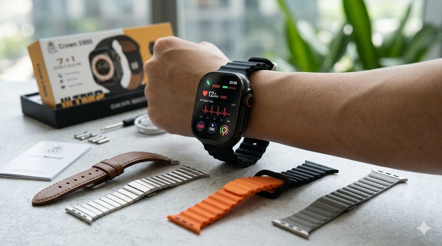 ⌚ ساعة واحدة… 7 حلول ذكية في إيدك! Crown S900 7+1 – خلي يومك أذكى وأسهل